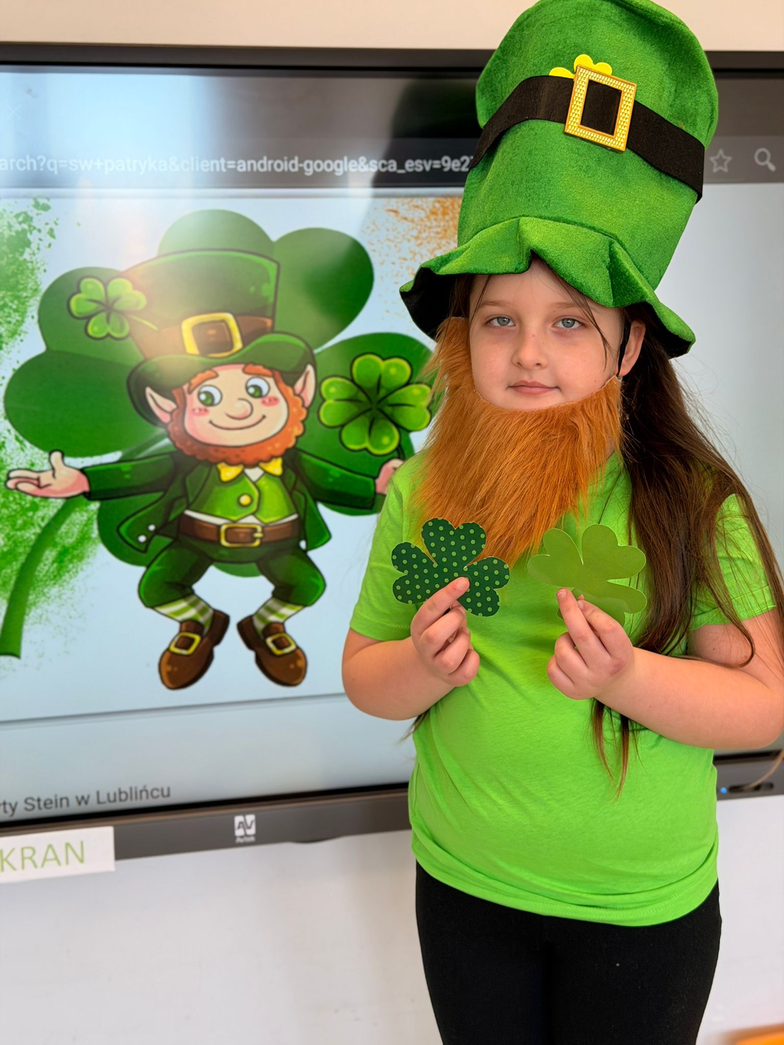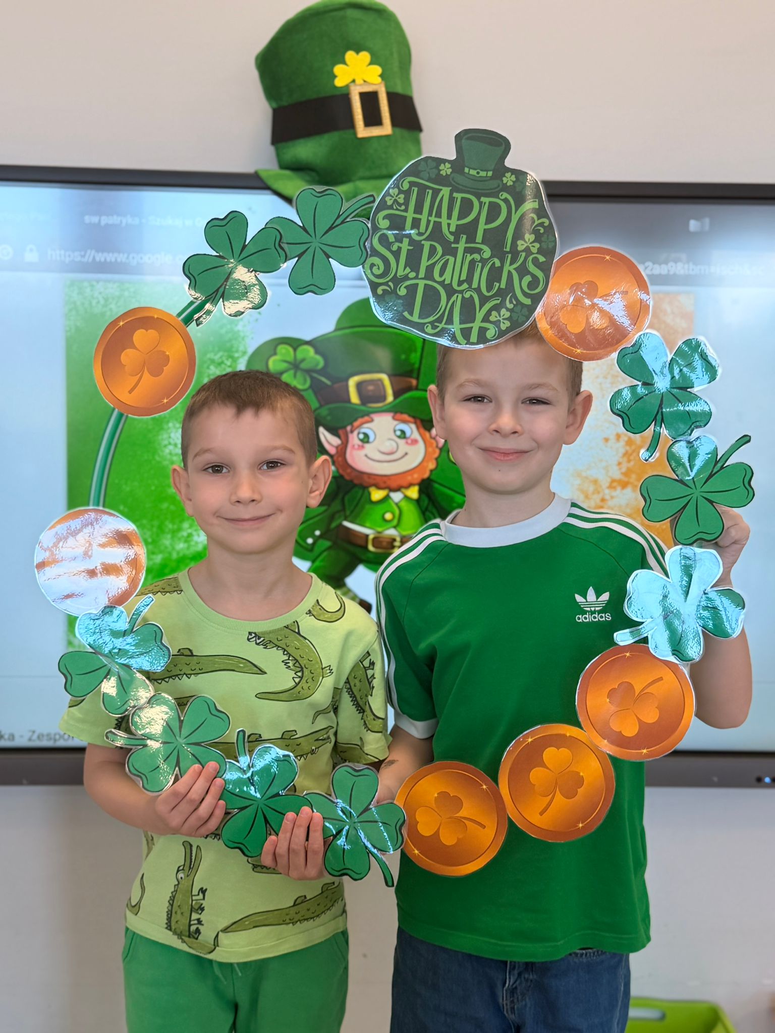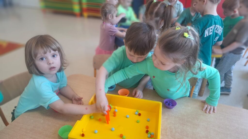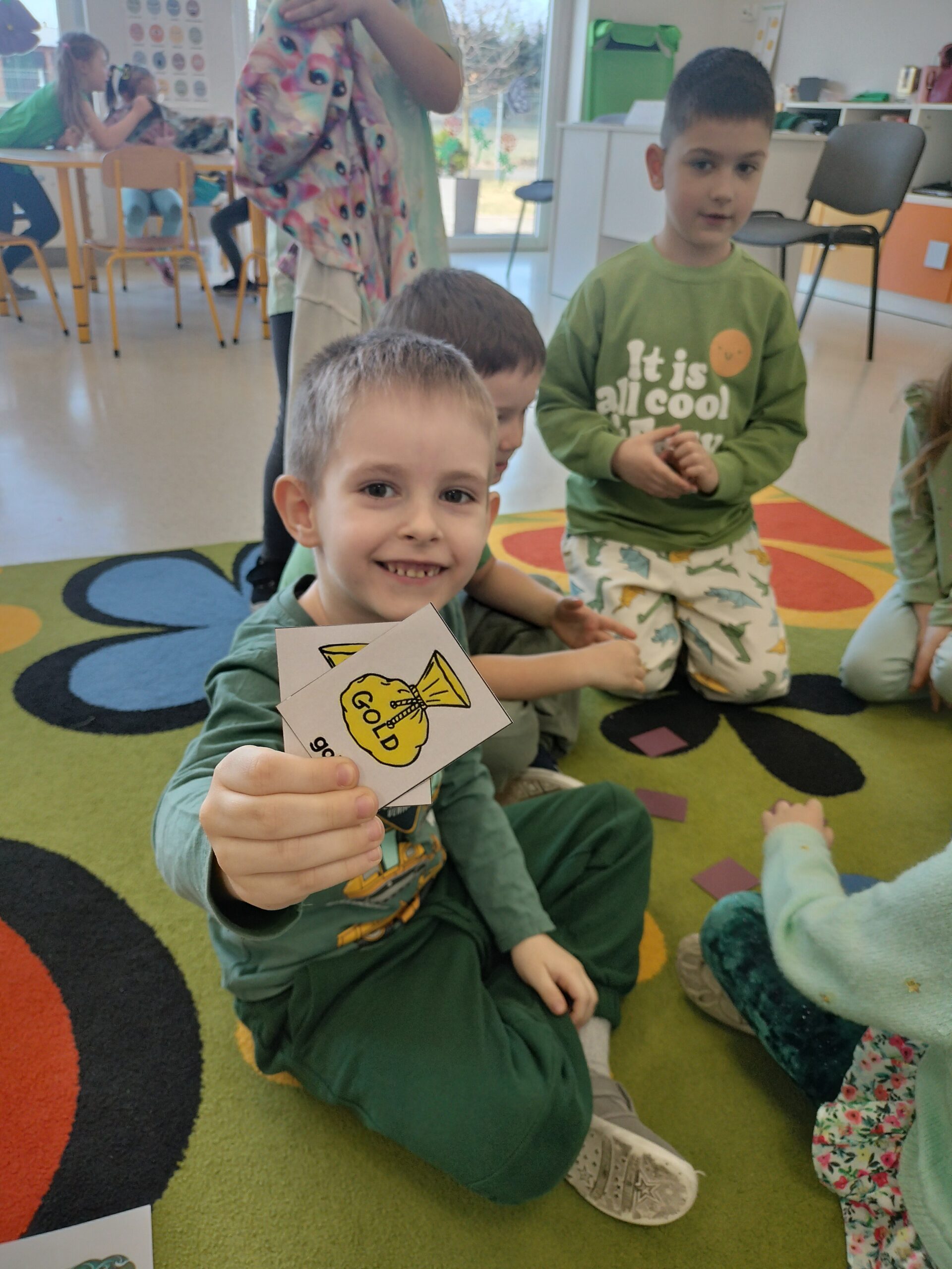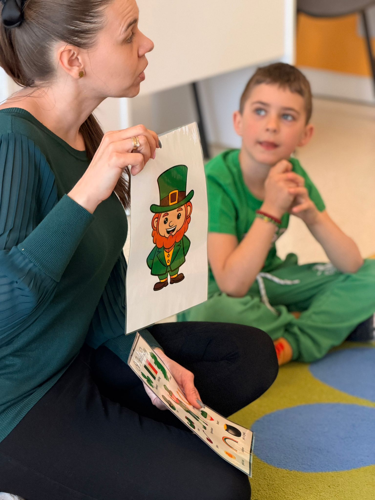 Dziś w przedszkolu wszystko jest zielone! W ramach innowacji Play with English przenieśliśmy się do jednego z najbardziej zielonych państw i świętowaliśmy Dzień Świętego Patryka. Dzieci poznały historię patrona Irlandii i symbole kraju. Szukały także złotych monet skrzata Leprechauna schowanych na końcu tęczy.